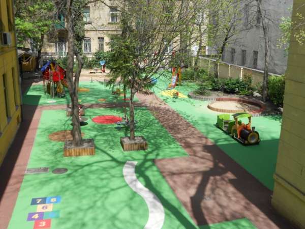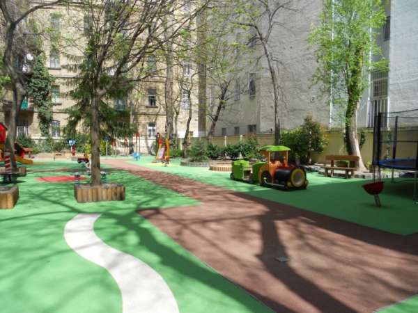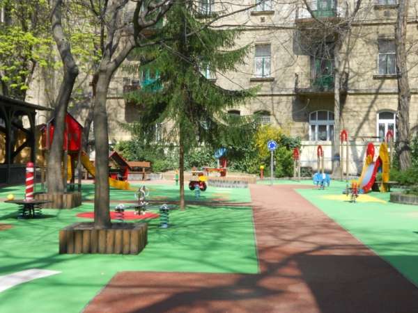 A bölcsőde és az óvoda közös belső udvarral rendelkezik, amelyet felváltva használnak a gyermekek. A belső játszókert egyedülálló a belvárosban, sok zöld fa, bokor, illetve mozgásfejlesztő játék és focipálya található benne. A nagy tér, valamint a sok változatos játék maximálisan biztosítja a gyermekek mozgásfejlődését, lehetőség van az önfeledt szabad mozgásra, játékra.